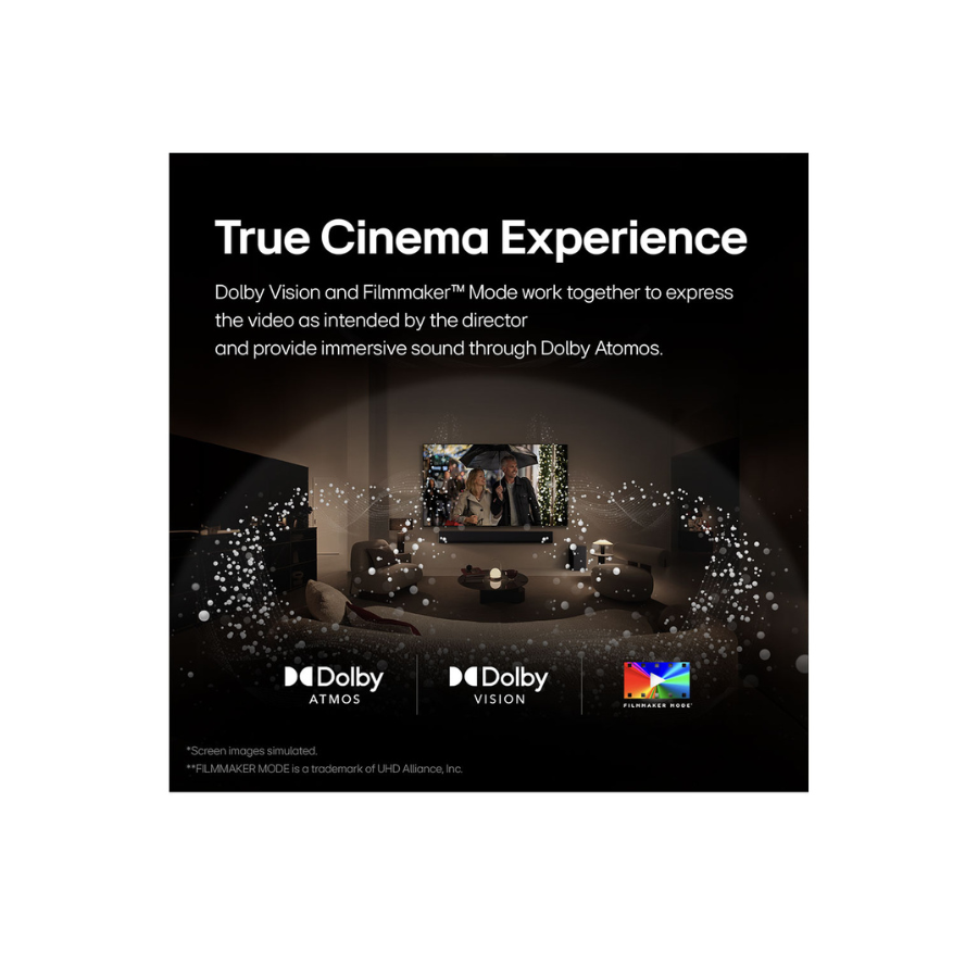 • Incredible movies and gaming enhanced by Dolby Atmos and Dolby Vision, VRR, G-Sync, and Freesync