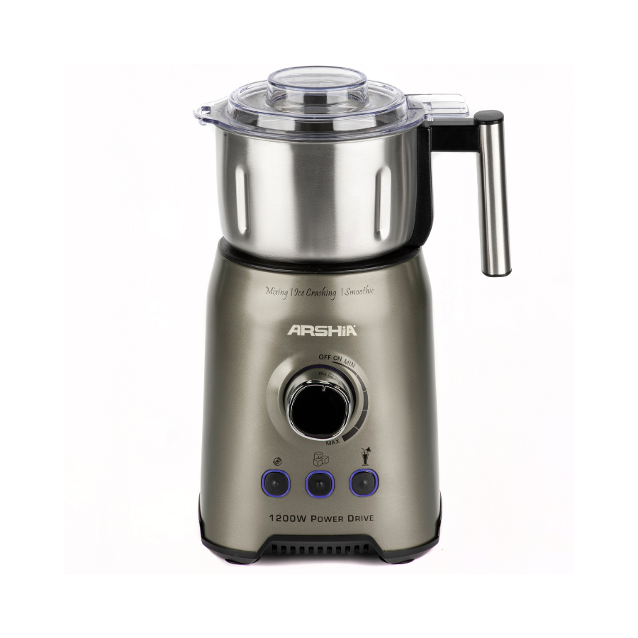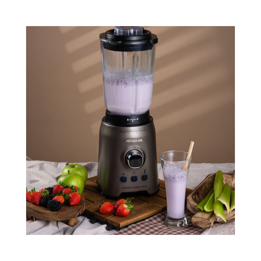 Introducing the Arshia 2 in 1 Blender with Grinder, a powerful kitchen essential designed to handle all your blending and grinding tasks with ease. Featuring a robust 1200W full copper motor, this appliance ensures efficient performance and long-lasting durability. Whether you're chopping, mixing, blending, liquefying, or crushing ice, this blender is up to the task.