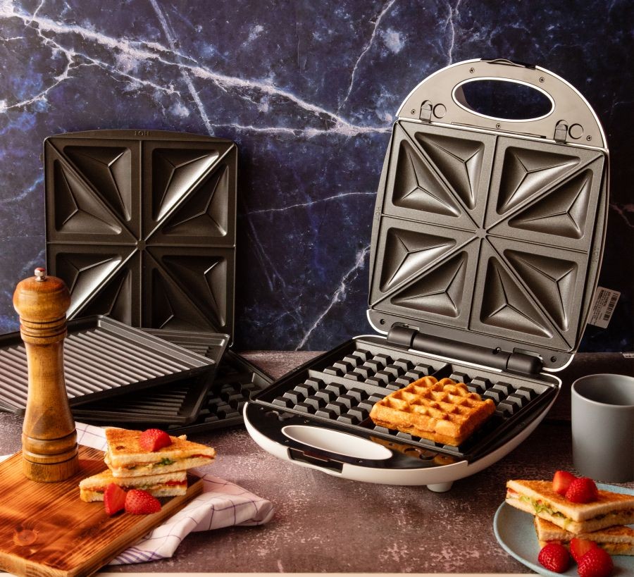 - 3 Interchangeable Plates: Includes Sandwich Plates, Grill Plates, and Waffle Plates.
