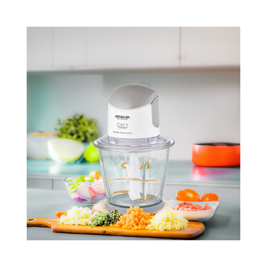 Arshia Titanium Electric Chopper ,your Ultimate Kitchen Companion effortlessly tackle chopping and food preparation with the Arshia Electric Chopper. Designed for convenience and efficiency, its powerful motor and one-touch operation make quick work of any chopping task. Save time and effort in the kitchen, and let this user-friendly appliance handle the hard work for you. Enjoy more time for creativity and less time on prep with the Arshia Electric Chopper.