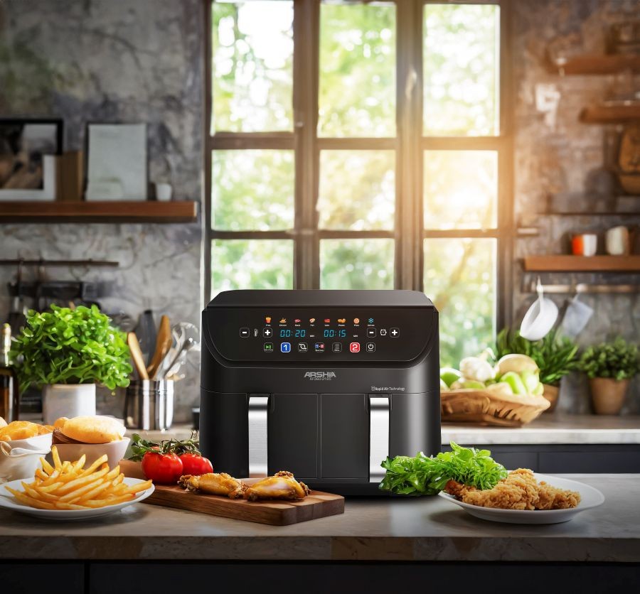 The Arshia 9L Twin Basket Air Fryer is a powerful 2800-watt appliance designed for healthy and efficient cooking. Its innovative twin-basket design allows you to cook multiple dishes simultaneously, saving time and offering flexibility for various recipes.