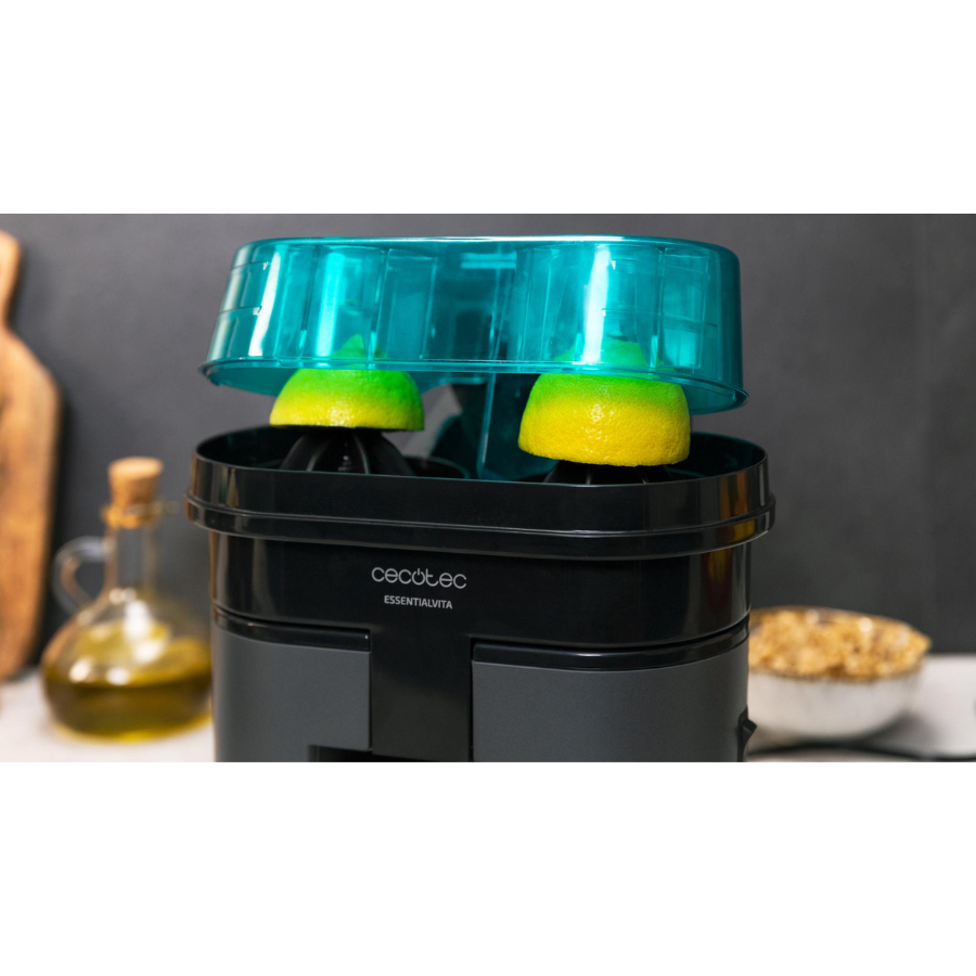 EssentialVita Twice Black juicer, powered by a 90 W motor. Its dual squeezing