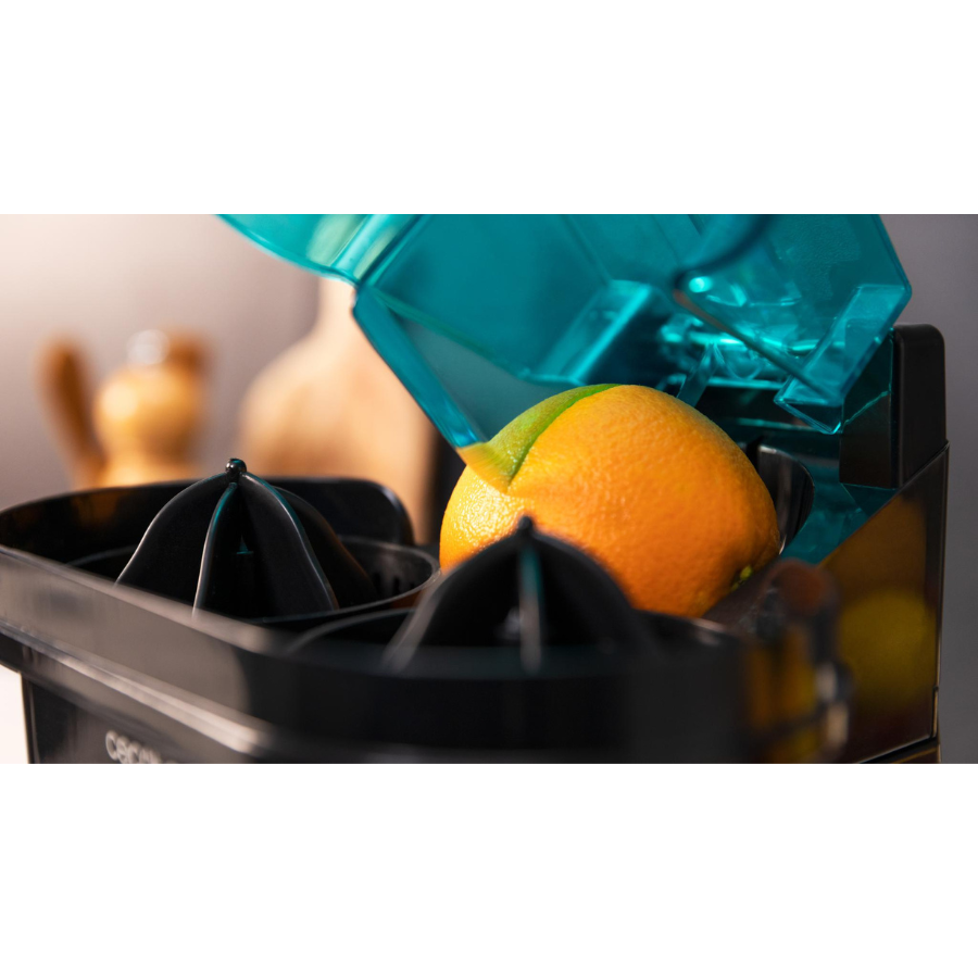 head and built-in lid cutter allow you to cut and press two orange halves in