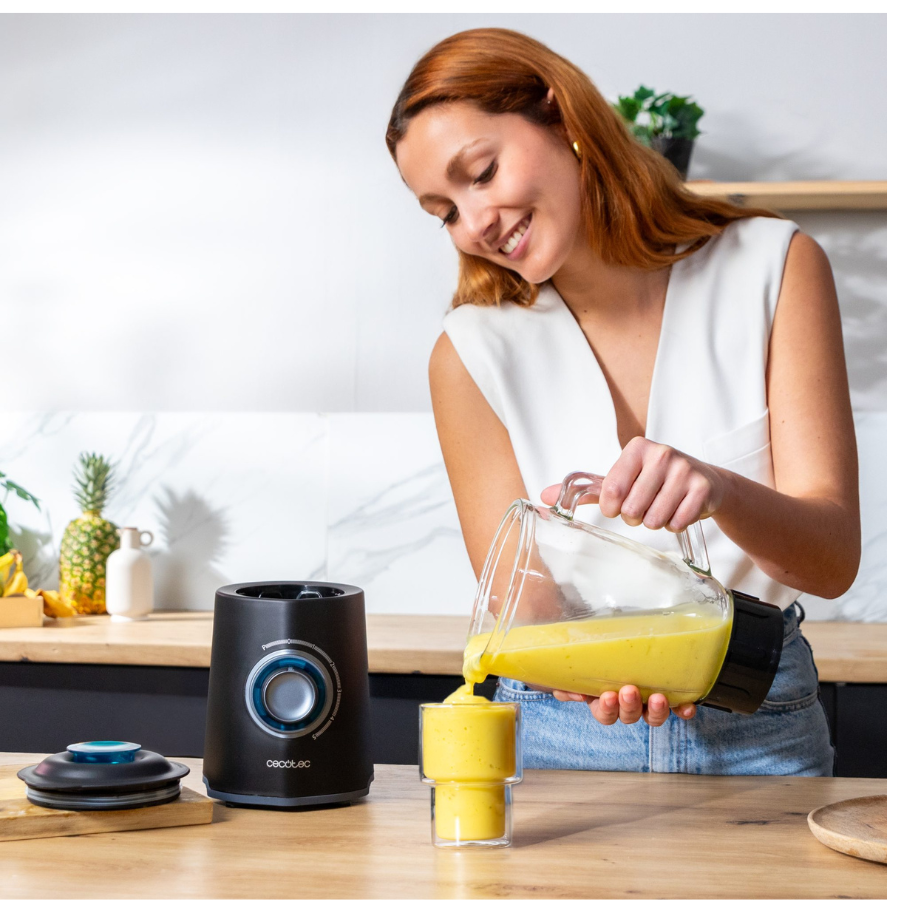The Cecotec Power Black Titanium 2000MAX Mix Go is a powerful jug blender designed for perfect crushing and blending. With 2000 W of maximum power and turbo function, it pulverises even the toughest ingredients, including ice. The 6-blade system coated with Black Titanium keeps blades sharper for longer, ensuring precise and smooth results. Its 1.5 L heat-resistant glass jug is ideal for both hot and cold preparations, while the included sport cup and cooler add extra convenience for on-the-go lifestyles.