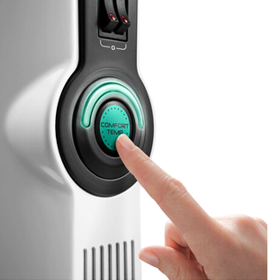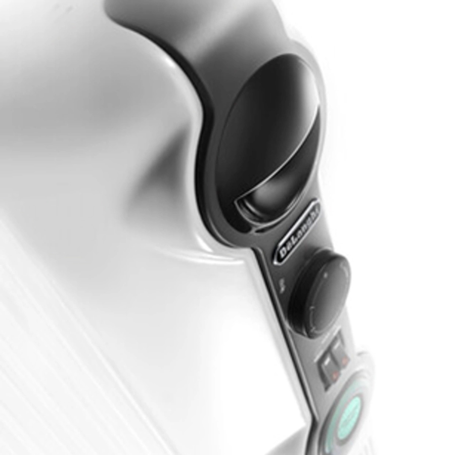 Enjoy efficient and comfortable heating with the DeLonghi TRRS1225C oil-filled radiator, offering up to 2500W of power with 3 heat settings for daily comfort. Designed with 12 fins for even heat distribution, ideal for rooms up to 75 m³. Equipped with a thermostat for perfect room temperature, safety system against overheating, caster wheels for easy movement, and a built-in cable storage compartment. A stylish and reliable choice for safe home heating all winter long.
