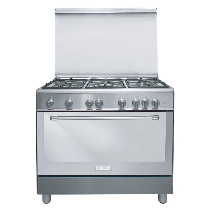 This Elba oven, made in Italy, combines functionality with a modern design. Measuring 90 cm in width and 60 cm in depth, it features 5 burners to meet all your cooking needs. It includes a cooling fan and food warmer, along with a full safety system for peace of mind. The oven also comes with an interior light and rotisserie spit for perfectly roasted dishes, as well as a timer for precise cooking. Equipped with knob ignition and manual control, it boasts a sleek stainless steel finish.