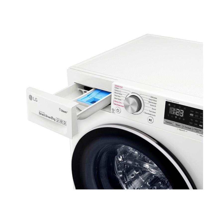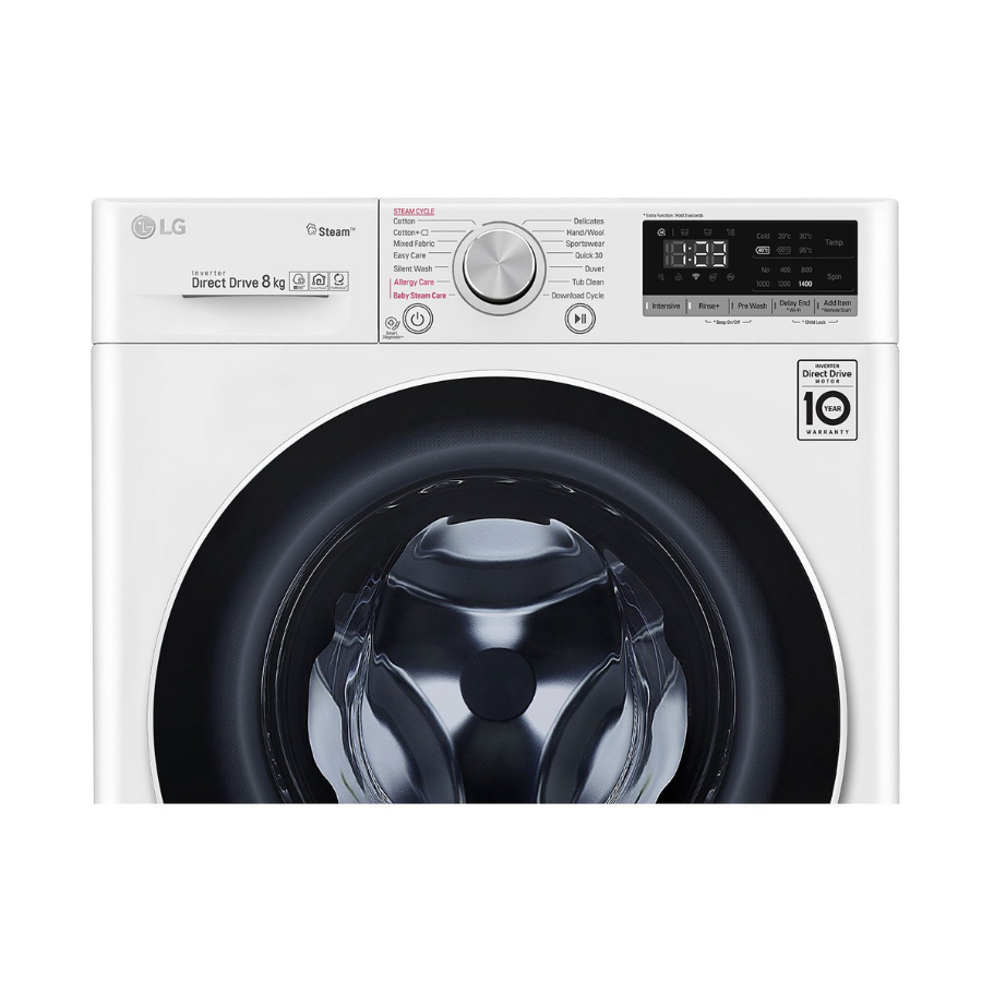 LG Front Load Washer 8KG , AI Direct Drive Motor, Steam , White Color