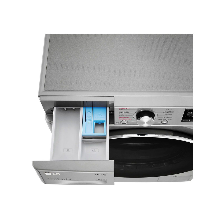 LG Front Load Washer 8KG , AI Direct Drive Motor, Steam , Silver Color