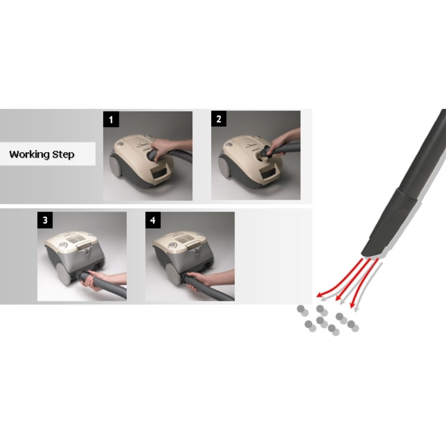 2-Way Parking System: Attach the pipe to the vacuum during or after use with the 2-Way Parking design, making storage neat and hassle-free.