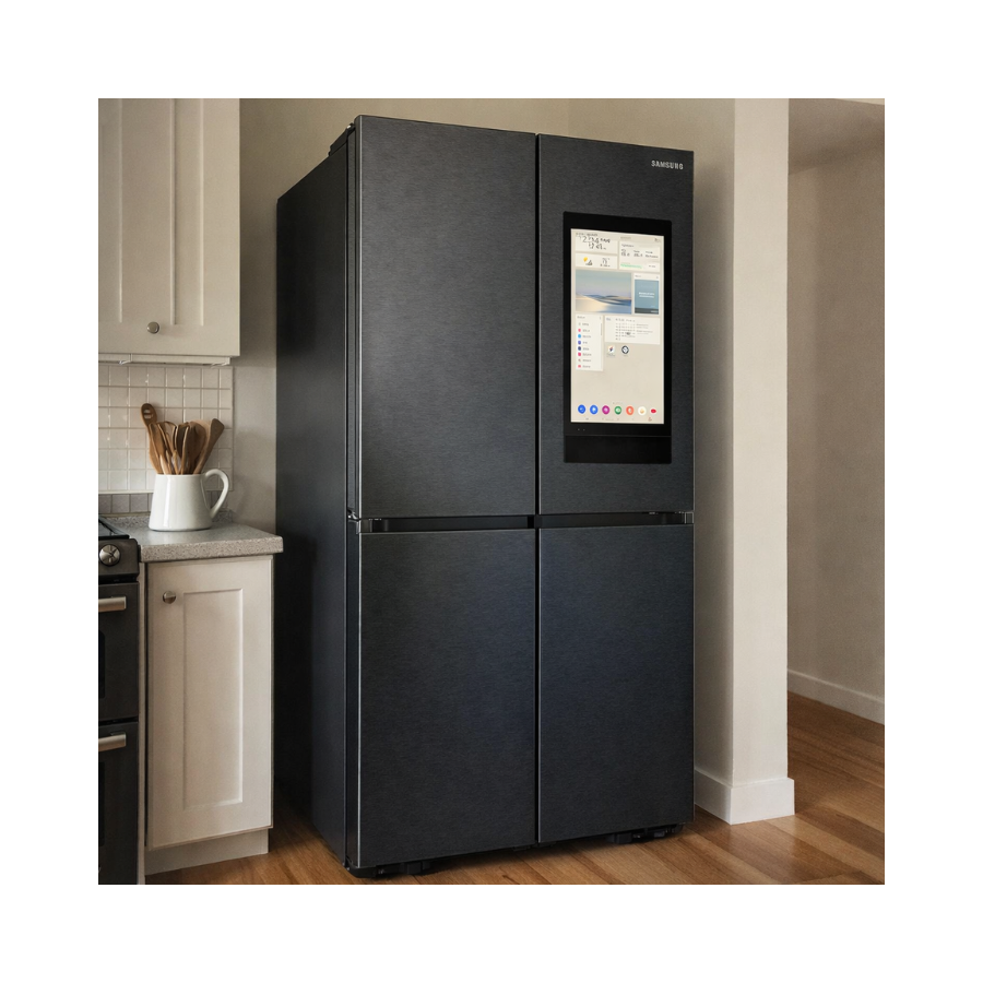 living. The SAMSUNG Bespoke AI 4-Door French Door Refrigerator features AI