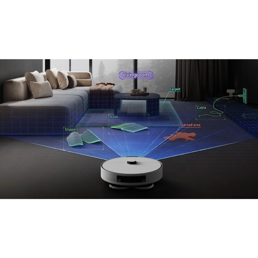 With intelligent AI recognition, it carefully navigates your home, identifying humans, pets, and even hard-to-see objects to clean safely and efficiently. It categorizes spaces, senses carpet depth to adjust cleaning, and pinpoints stained spots for deeper, targeted cleaning.