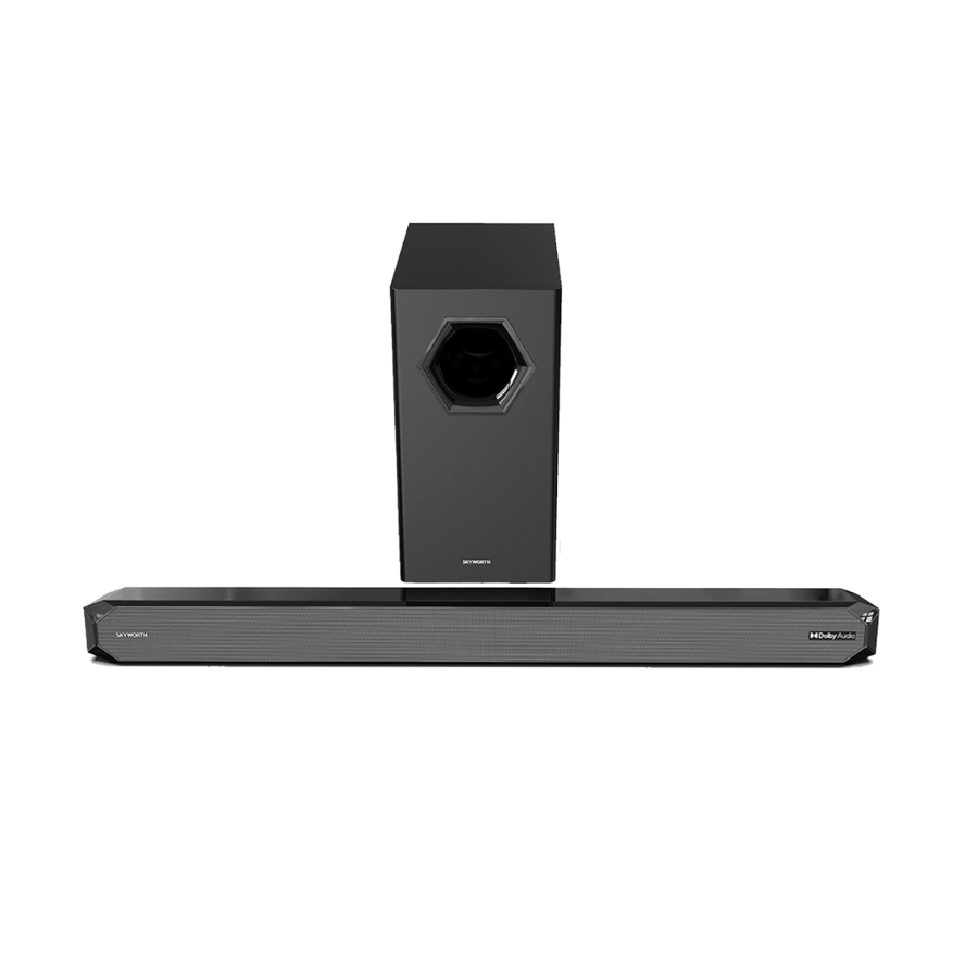 Skyworth 2.1 Channel Soundbar with Dolby Audio & Wireless Subwoofer Experience powerful 160W sound with the Skyworth 2.1 channel soundbar, featuring Dolby technology, Bluetooth 5.3, and multiple inputs like HDMI (ARC) and USB. Sleek design with an LED display and remote control included.