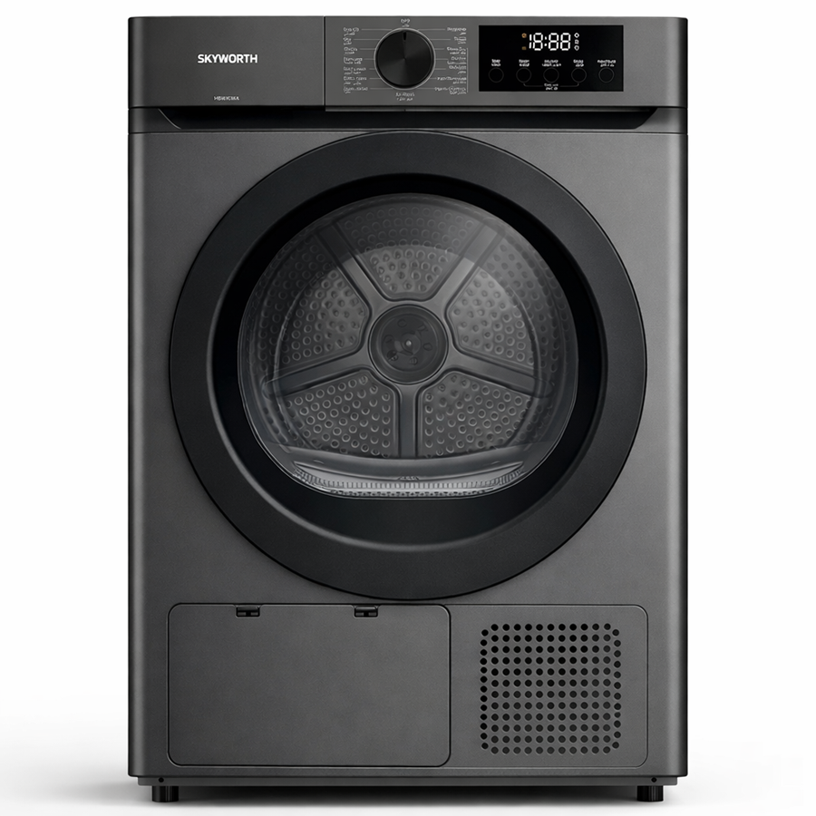 Skyworth Dryer – 9 kg, 14 Programs, Silver Color, Energy Efficiency A++ Sensor Drying, Child Safety Lock, Delayed Start, Mechanical Lock