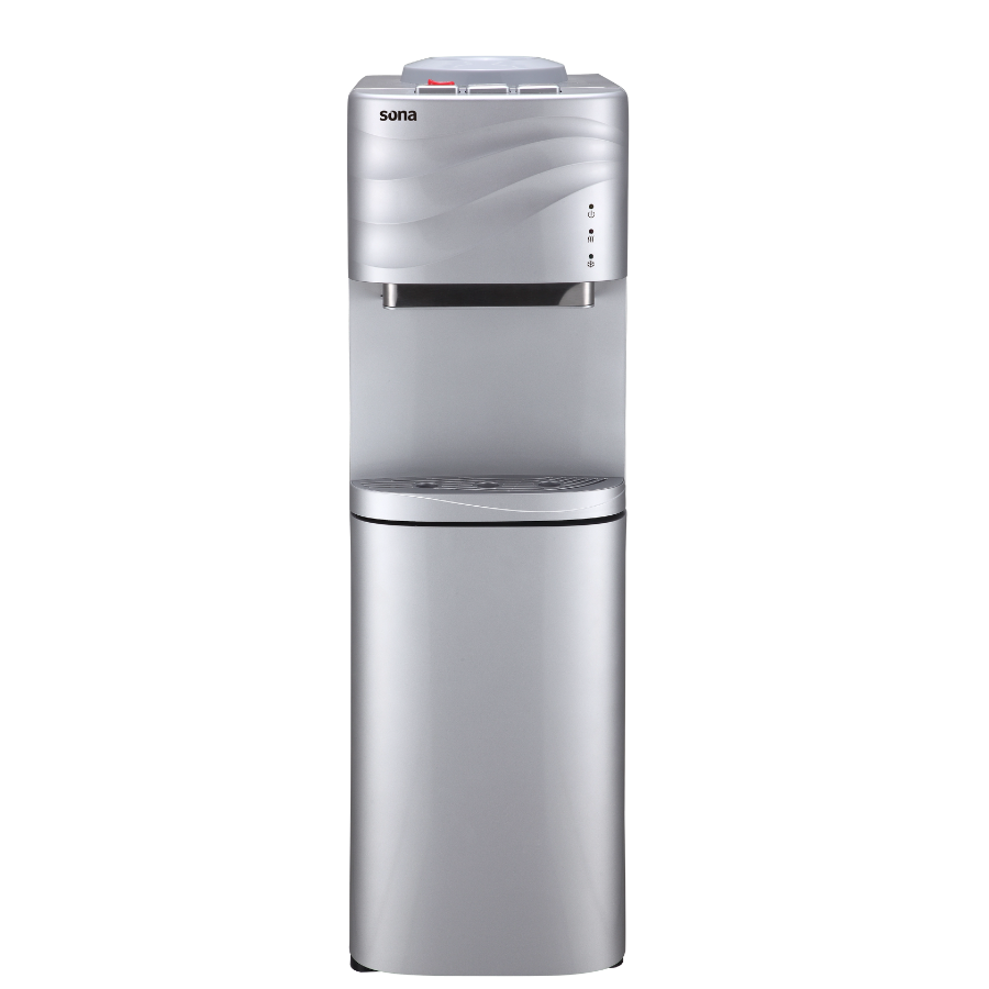 A stylish water cooler by Sona in silver, featuring three